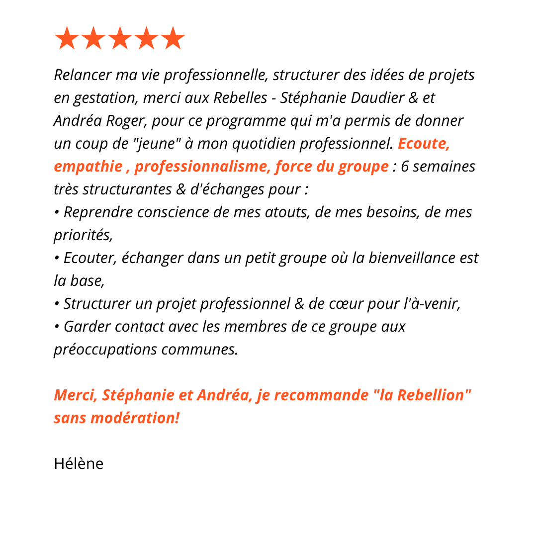 Un rendez-vous collectif d’1h pour faire le point sur votre avancée et faire fonctionner l’intelligence collective à travers des réflexions de groupe.