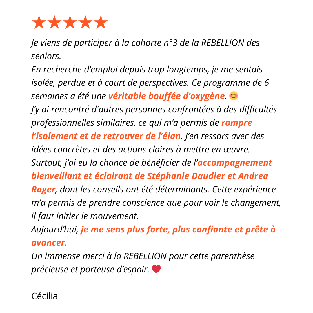 On y partage les obstacles des 50+ et des stratégies concrètes pour transformer sa carrière, créer son propre emploi ou développer son activité.